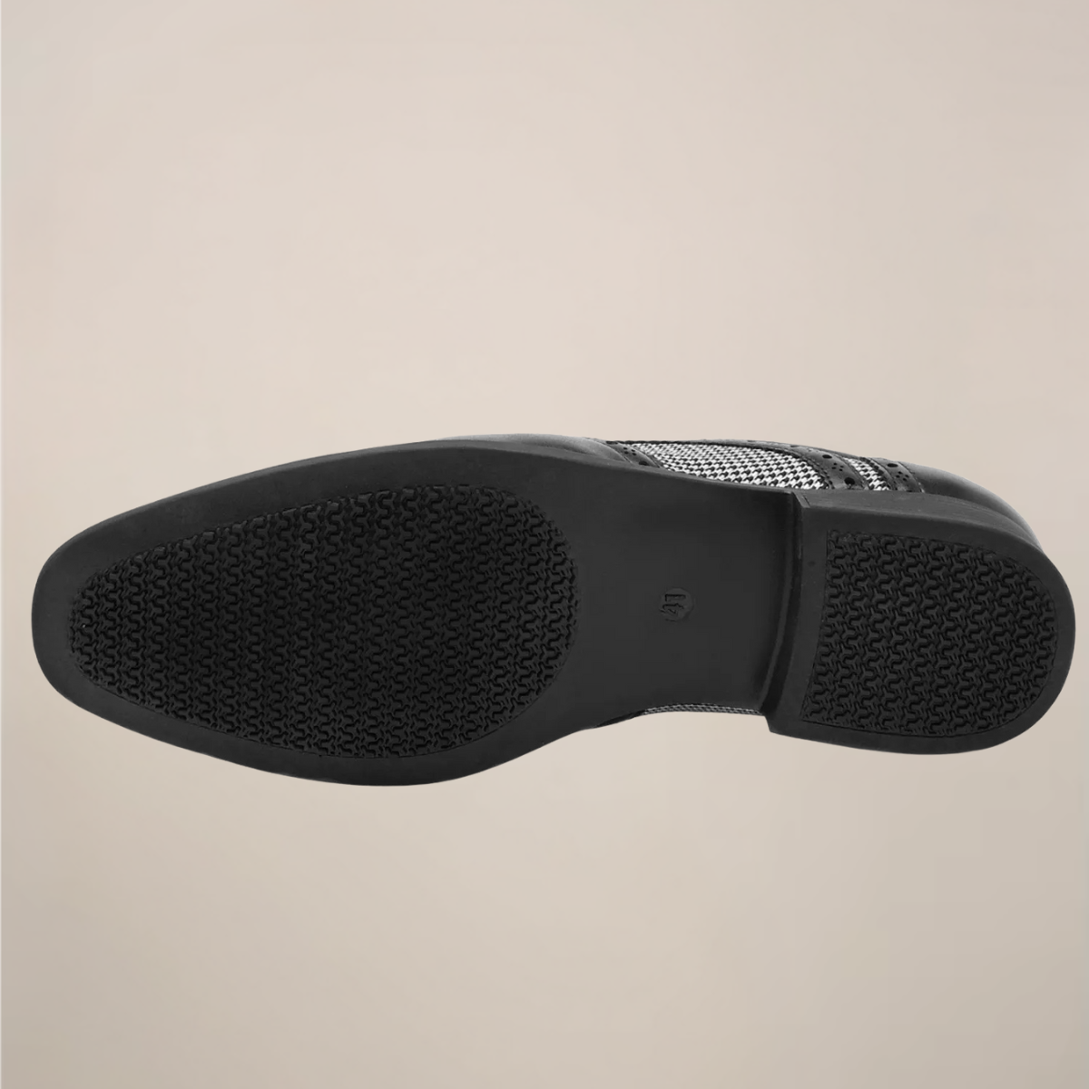 Hev Din Stil med våre raffinerte snøresko i Oxford-stil. Med et klassisk houndstooth-mønster kombinert med rike tonale brogue-detaljer, tilbyr disse skoene en sofistikert vri på tradisjonelt fottøy. Perfekte for både forretnings- og smart casual-anledninger, de legemliggjør allsidighet og eleganse.