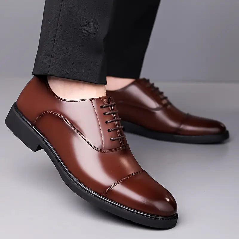 Hev Stilen Din: Polerte og tidløse, disse glansfulle brune skoene er laget for å tilføre skarp eleganse til ethvert antrekk. Perfekt egnet for både profesjonelle og kveldsantrekk, de tilbyr en slank spiss tå og presis snøring som sikrer at du ser best ut ved enhver anledning.